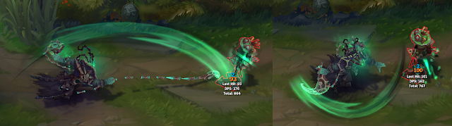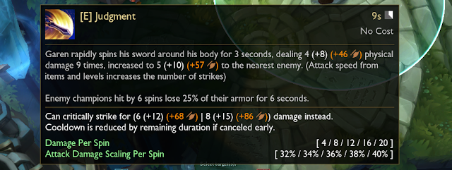 심판 (E)- 챔피언 레벨 비례 피해량 : 0-6.6 -> 0-8.2