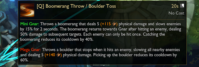 돌덩이 던지기 (Q)- AD 계수 : [120% 총 AD] -> [140% 총 AD]