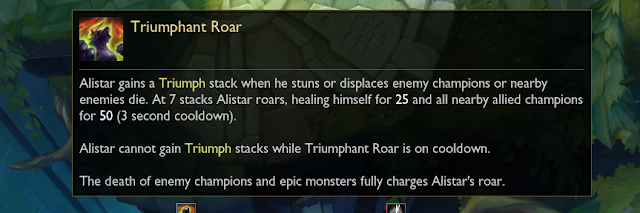 승리의 포효 (패시브)- 회복량 : 20-139 -> 25-161