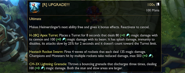 업그레이드!!! (R) : CH-3X 전격 수류탄 (E)- 피해량 : [150/250/350 (+75% AP)] -> [100/200/300 (+60% AP)]
