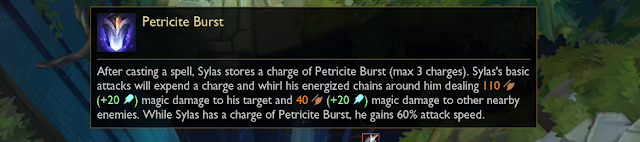 페트리사이트 폭발 (패시브)- "사일러스가 페트리사이트 폭발 중첩을 가지고 있으면 공격 속도가 60% 증가합니다"