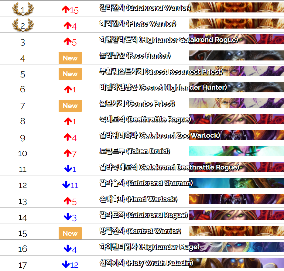 하랜 갈라도적도 강력한 덱파워를 가지고 있으니 전사가 싫다 하시는 분들에게 추천해드리고 돌냥도 순위권에 진입을