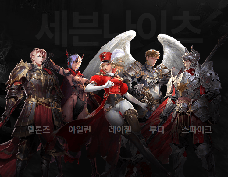 홈페이지상에 들어가보시면 여러 진영의 캐릭터 소개가 나와 있습니다. 우선 세븐나이츠에 대한 소개입니다.