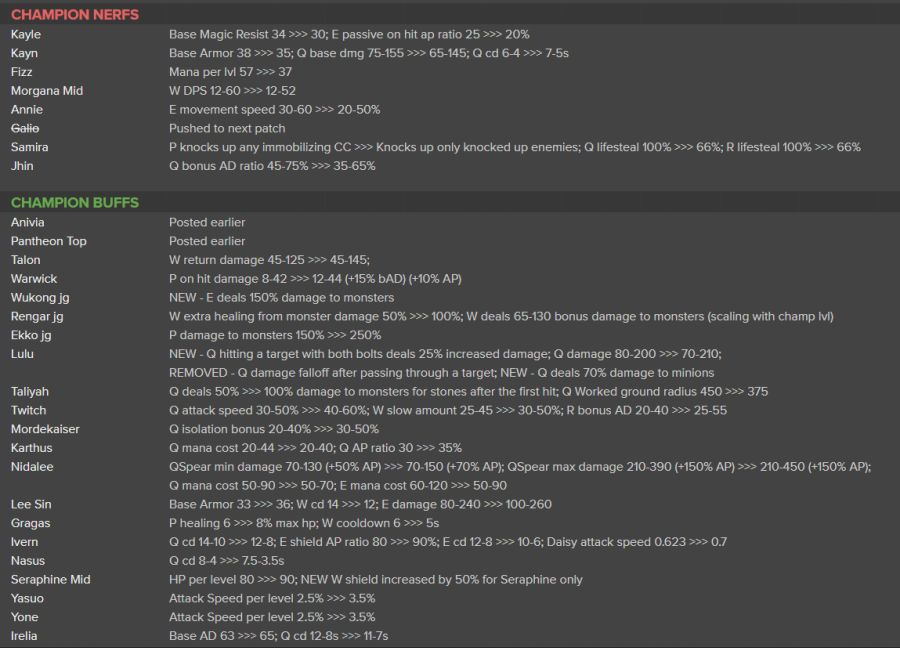 라이엇은 이런 것을 싫어하기 때문에 바로 템 밸런스 패치가 이번 패치의 주목적이며 그 외에 많이 승률이 떨어진 챔피언들에게는 보상패치가 이루어질 계획입니다. 지금부터 살펴보시죠.