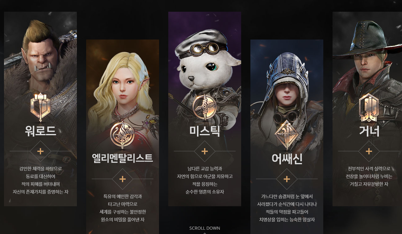 클래스는 5개의 클래스가 있으며 나중에 전직시스템이 있을지는 추후에 살펴봐야할 것 같습니다.