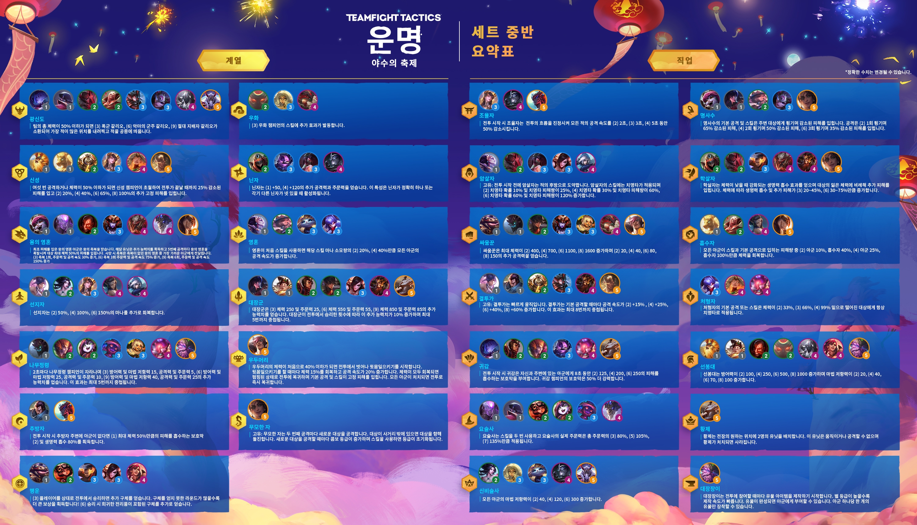 현재까지 신규 특성 및 유닛 리스트입니다. (제드,킨드레드,모르가나,시비르,나서스,케일,트린다미어,자야,라칸,다리우스)