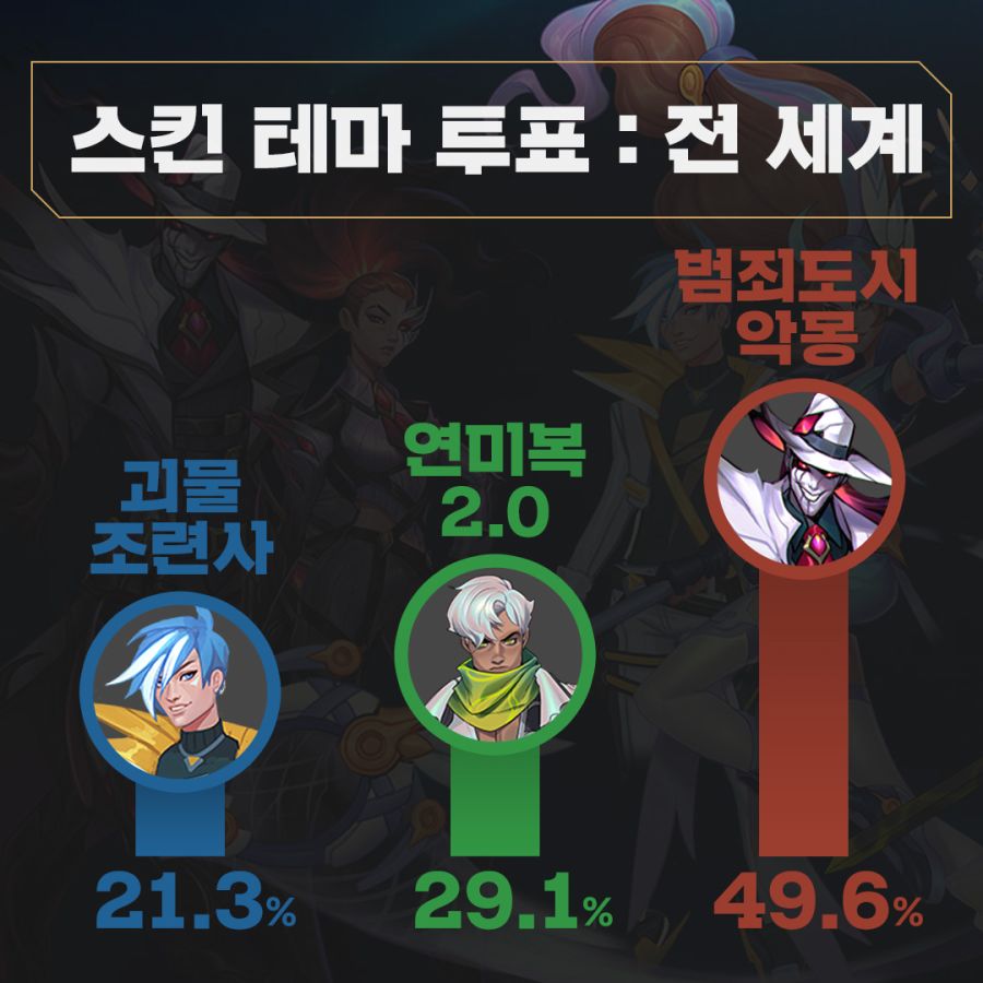 안녕하세요 토킹맨입니다. 2022년에 이루어지는 챔피언 리메이크와 출시될 스킨테마 투표결과가 나왔습니다.