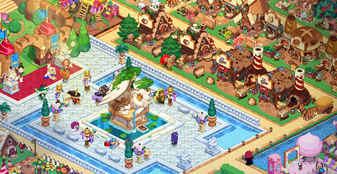쿠키런 킹덤은 각자 자신의 마을이 있고 여기서 생산품을 생산하면서 동시에 쿠키들의 성장을 도모해야 하는 게임입니다. 저는 약간 감성과는 거리가 있어서 건물들을 대충 지었지만 꾸미기를 좋아하시는 분들은 예쁘게 꾸미실 수 있습니다.