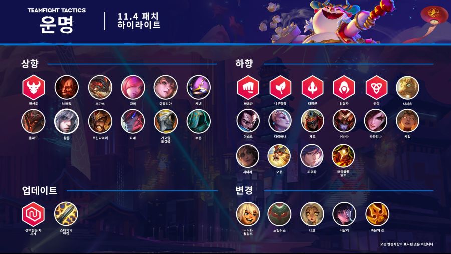 안녕하세요 토킹맨입니다. 롤 11.4 패치와 동시에 롤토체스도 11.4 패치가 완료되었습니다.