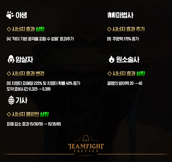 시너지 변경점은 전에도 잠깐 안내해드렸듯이 야생시너지가 요들 카운터 조합으로 떠오를 것이고