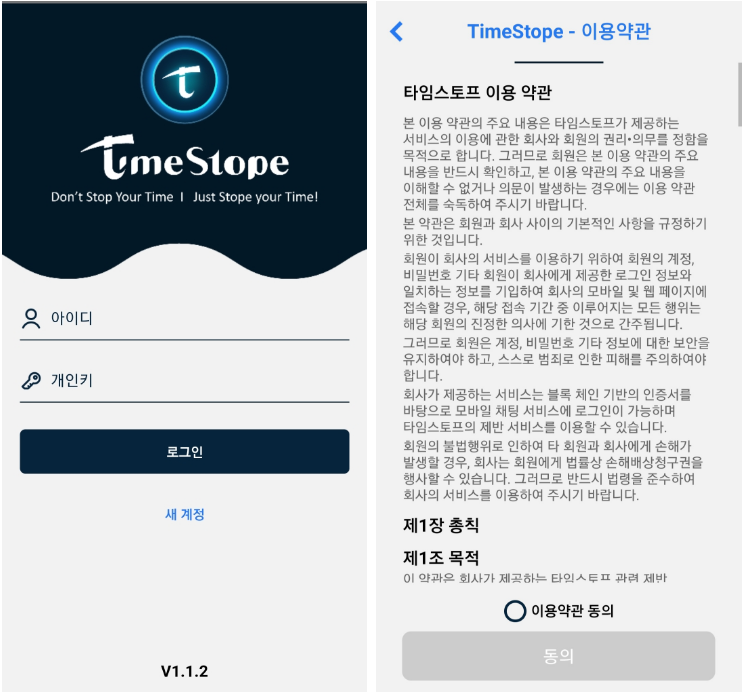 구글플레이에 타임스토프로 검색하셔서 다운받고 실행하시면 처음에 이 화면이 나오게 됩니다.