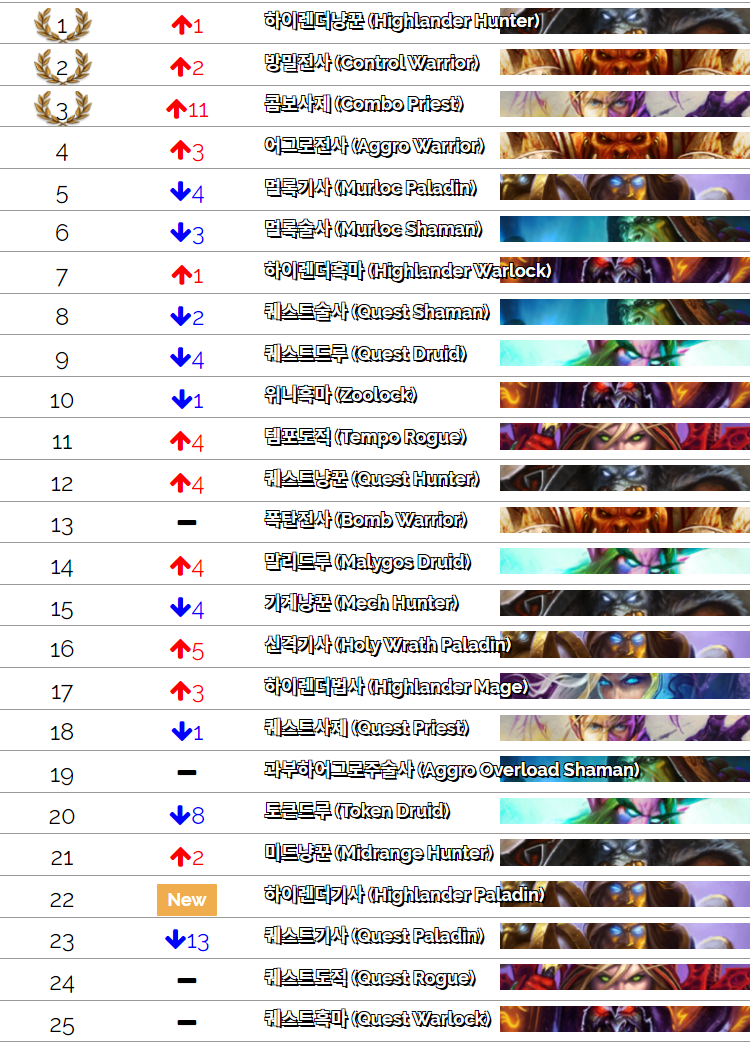 다시 템포를 잡는 도적으로 돌아오고 있는 추세이며 여기서 주목할 점은 하이랜더 흑마법사 입니다.
