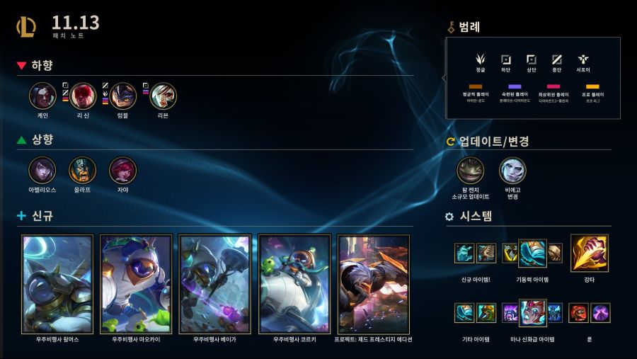 프로젝트: 제드 프레스티지 에디션, 우주비행사 마오카이, 우주비행사 람머스, 우주비행사 베이가, 우주비행사 코르키가 이번 패치 기간에 상점에서 판매됩니다.