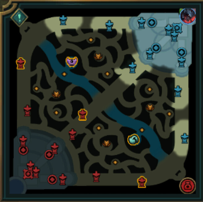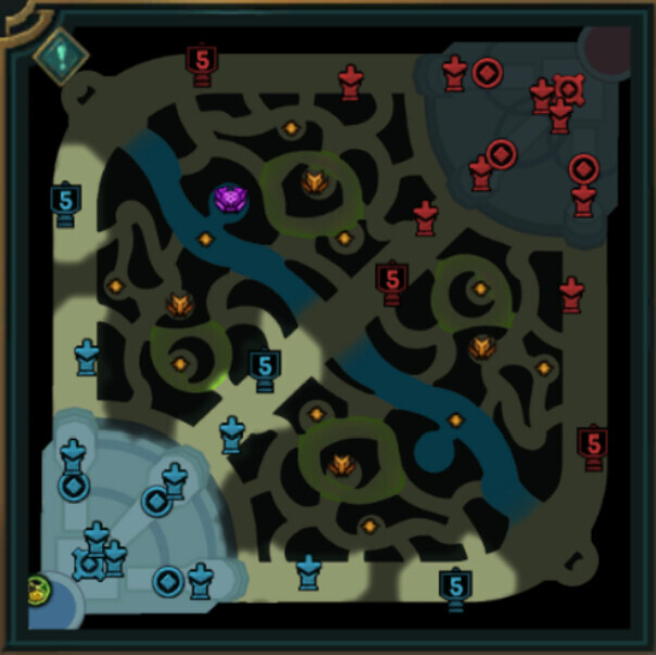화학공학 협곡: 정글 네 군데에 가스 구역이 형성되어 구역 내에 있는 챔피언에게 위장 효과를 부여합니다. 가스 구역 내에서 챔피언이 자신보다 현재 체력이 높은 적을 공격하면 최대 10%의 추가 피해를 입힐 수 있습니다. 자신의 체력이 공격하는 대상의 체력보다 340~1,020 (공격하는 챔피언의 레벨에 따라) 적을 때 최대 피해량에 도달합니다.