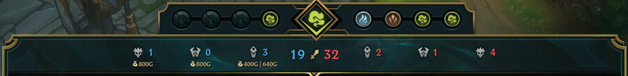 두 팀의 격차가 벌어질수록 획득할 수 있는 현상금이 60%까지 증가합니다. 각 목표물을 처치했을 때 획득할 수 있는 골드는 탭 메뉴에서 팀의 목표물 아이콘 아래에 표시됩니다.