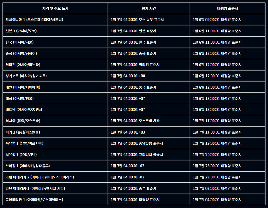 *중국 지역의 시즌 시작 날짜는 변경될 수 있으므로 나중에 다시 확인해 주시기 바랍니다!