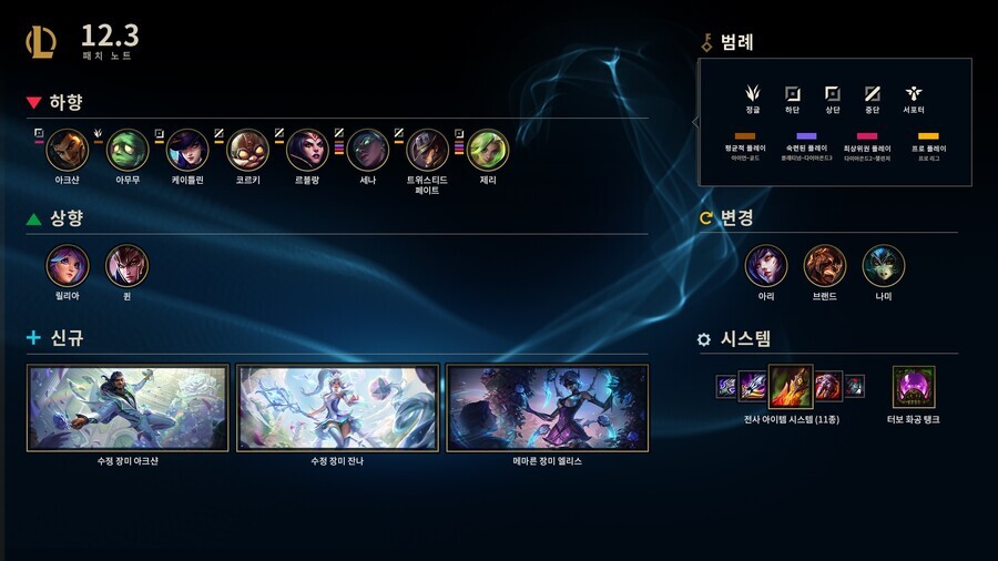 ● 5명의 플레이어로 이루어진 소환사의 협곡 로비에서 여러 포지션을 선택할 수 있던 버그를 수정했습니다.
