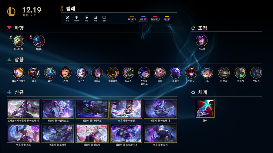 ● 신규 도망쳐라, 놀잇감들아: 이제 구체를 제외한 유닛이 신드라에 의해 들어올려진 동안 사망할 수 없는 상태가 됩니다. 이전에는 들어올려진 유닛이 사망할 수도 있었던 잠시 동안의 틈이 있었지만, 삭제되었습니다.