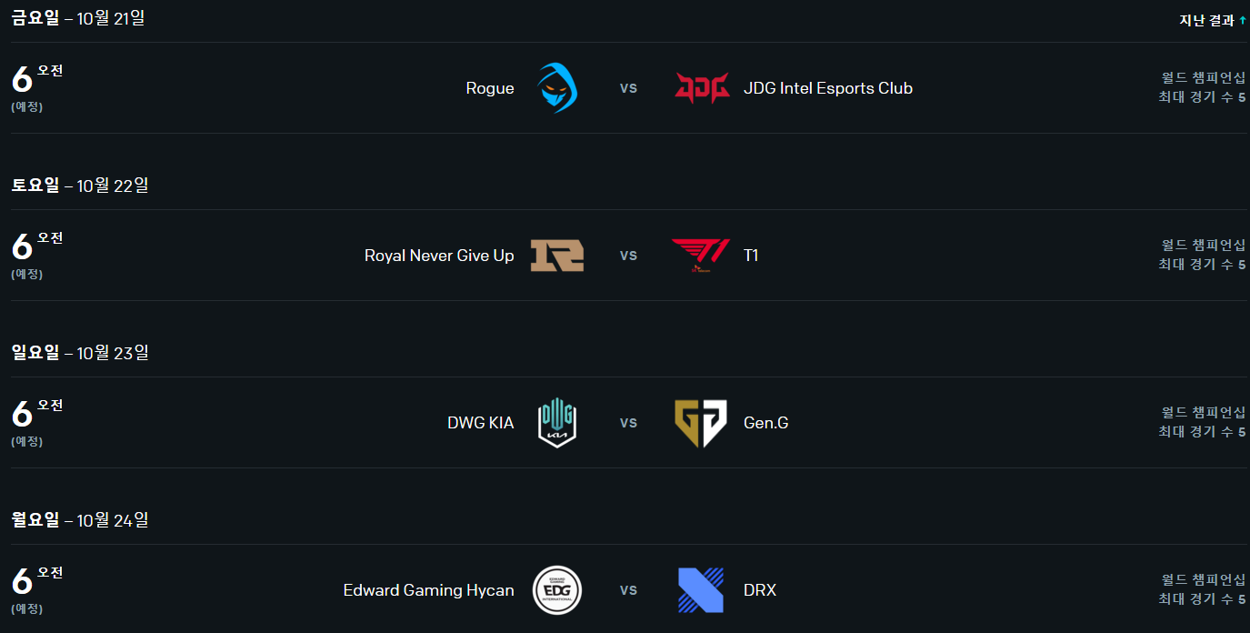 개인적으로 기대되는 매치업은 담원 기아와 젠지의 내전인데 서로 폼이 오른 부분이 많아서 재미있는 경기를 보여줄 것 같습니다. 다들 응원하는 팀들이 좋은 성적 거두길 바랍니다.