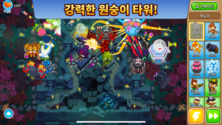 멋진 원숭이 타워, 업그레이드, 영웅, 발동 능력을 조합하여 완벽한 방어진을 구축해 쳐들어오는 풍선을 하나도 남김없이 다 터트려봐요!
