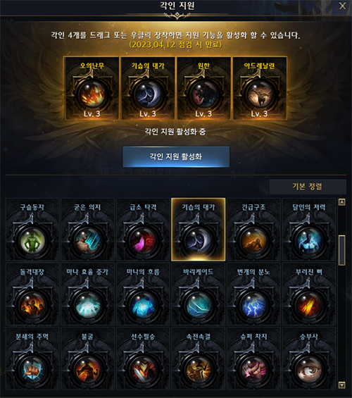 각인 맛보기 시스템은 하익 캐릭터에만 사용할 수 있으며 내년 4월까지 사용할 수 있으니 최대한 활용해보시기를 추합니다.