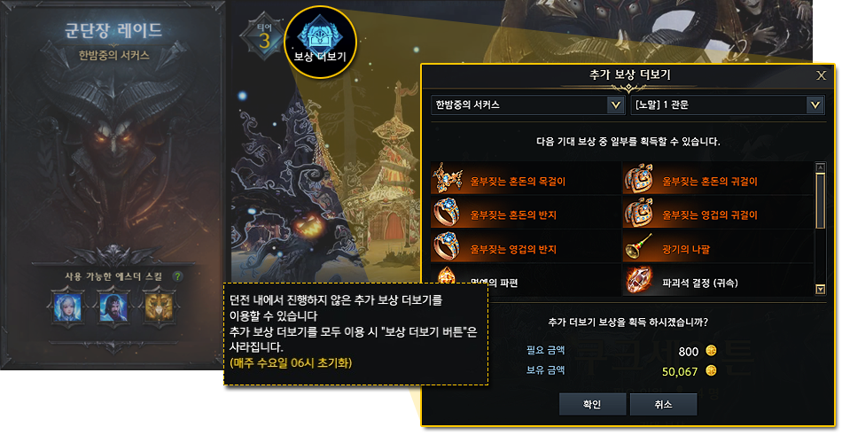 이게 레이드를 진행하다 보면은 까먹는 경우가 많은데 레이드를 종료하고 나서도 더 보기를 할 수 있습니다.