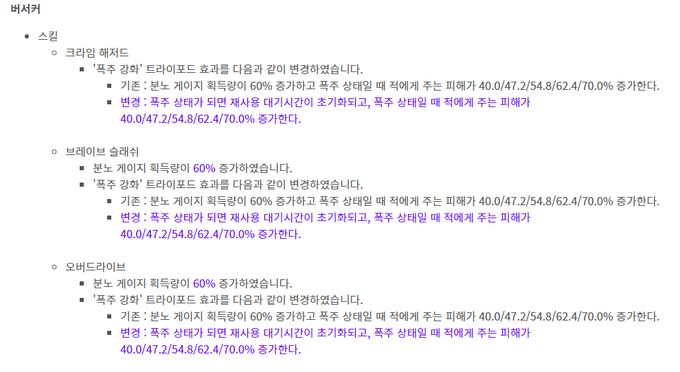 버서커유저들은 비기 폭주의 on/off를 달라고 계속 말했는데 이번 패치로 on/off는 줄 생각이 없다는 것이 제 생각입니다.