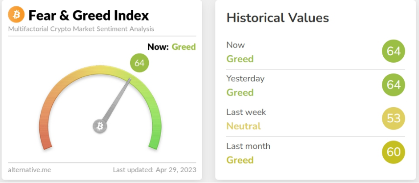 크립토 '공포·탐욕 지수' 64...탐욕 단계 유지