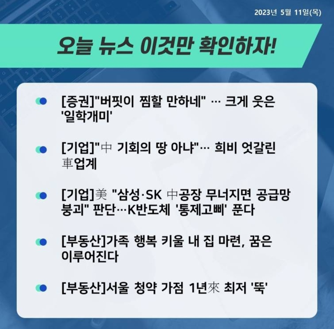 23년 5월 12일 간추린 아침뉴스 (0) | 2023.05.12 |