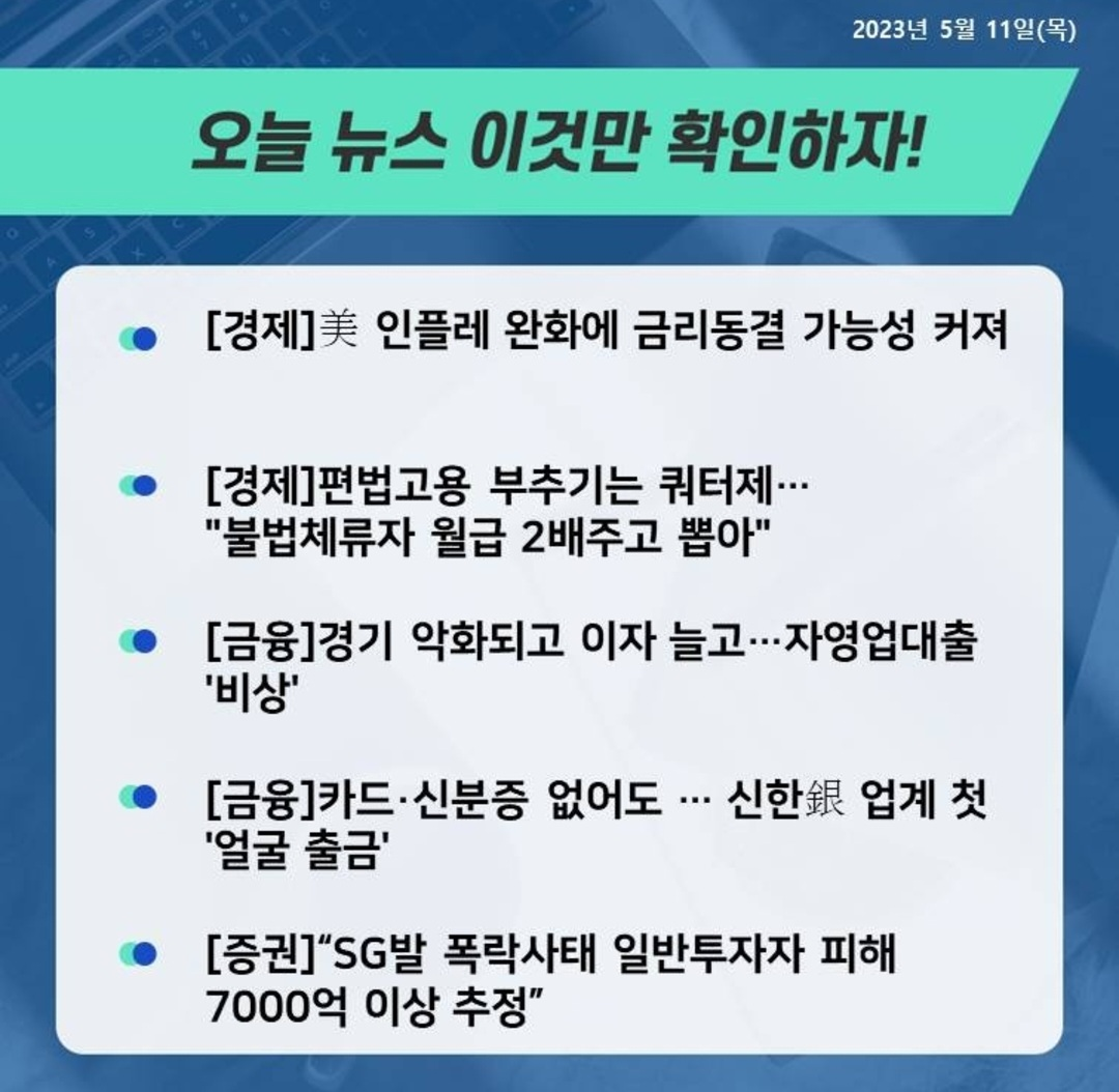 5월 11일 목요일 간추린 아침뉴스입니다.