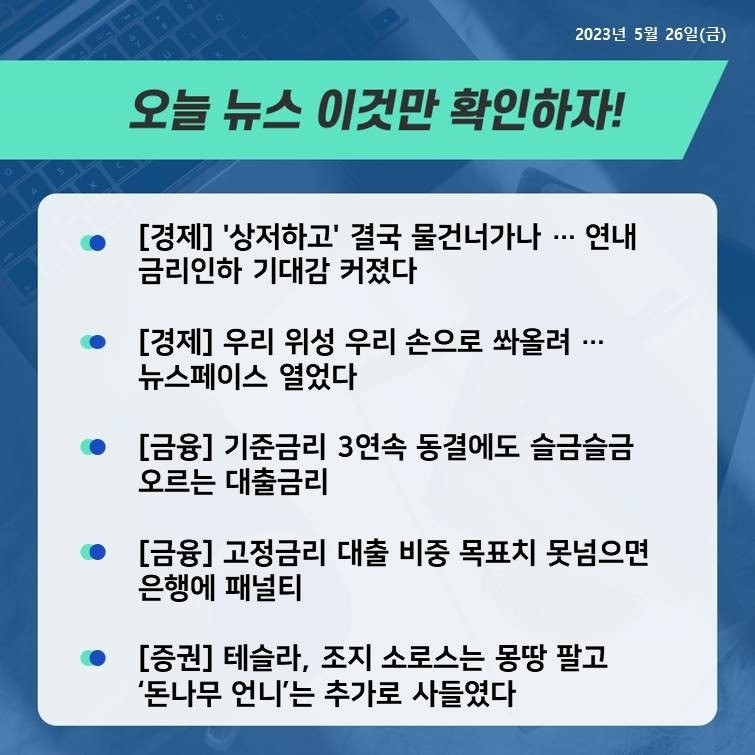 23년 5월 25일 간추린 아침뉴스 (0) | 2023.05.25 |
