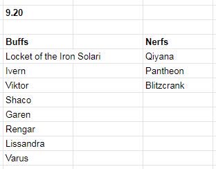 (파파고번역)패치 9.20 미리 보기. 중간 크기의 작은 버퍼/재작업(샤코, 가렌, 빅토르, 이번)이 있는 작은 패치.