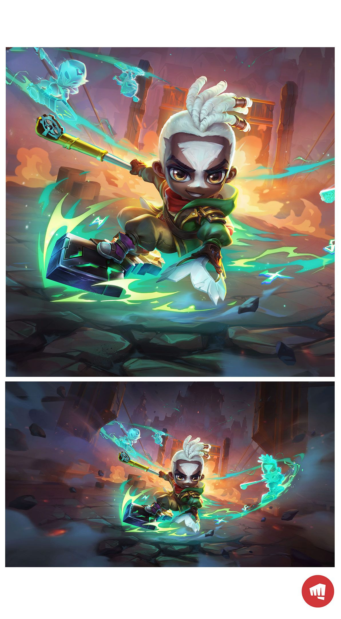 출시 패치와 함께 나올 또 하나의 아케인 테마 미니 챔피언은 미니 점화단 에코입니다. 이 아케인 테마의 미니 챔피언 3명은 15.1 패치 전까지 만나볼 수 있으며, 이후 새로운 콘텐츠가 출시됩니다.