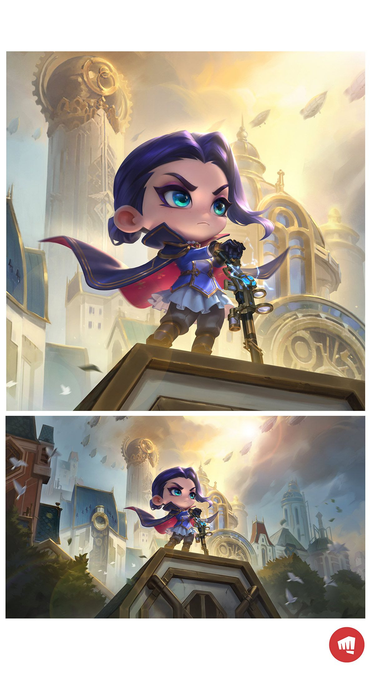 서로뿐만 아니라 우리의 마음속에도 스며든 케이틀린과 바이는 이번 보물 왕국의 공동 간판 콘텐츠입니다. 이로써 각 유형의 열혈 팬에게 더 많은 아케인 콘텐츠를 선사할 수 있습니다. 신화급 목표 콘텐츠를 뽑으면 미니 아케인 케이틀린과 미니 아케인 바이가 반반의 확률로 등장합니다. 이번 보물 왕국의 간판은 두 개이므로 신화급 콘텐츠 등장 확률을 각각 똑같이 대폭 올렸습니다(신화급 콘텐츠가 67% 더 자주 등장합니다). 신화급 간판을 하나 보유한 상태에서 신화급을 뽑으면 나머지 하나를 획득합니다. 케이틀린과 바이를 둘 다 좋아하고 첫 신화급 미니 챔피언을 뽑는 행운을 바란다면 이번이 절호의 기회입니다. 언제나 그렇듯 보물 왕국의 신화급 콘텐츠를 둘 다 보유했으면 신화급 콘텐츠 대신 신화 메달 10개를 획득합니다. 마지막으로 바이(혹은 케이틀린)만 좋아하는 편이라면 신화급 로테이션 상점에서 신화 메달 10개에 바로 구매할 수도 있습니다. 그러면 케이틀린과 바이를 확인해 보도록 하겠습니다!
