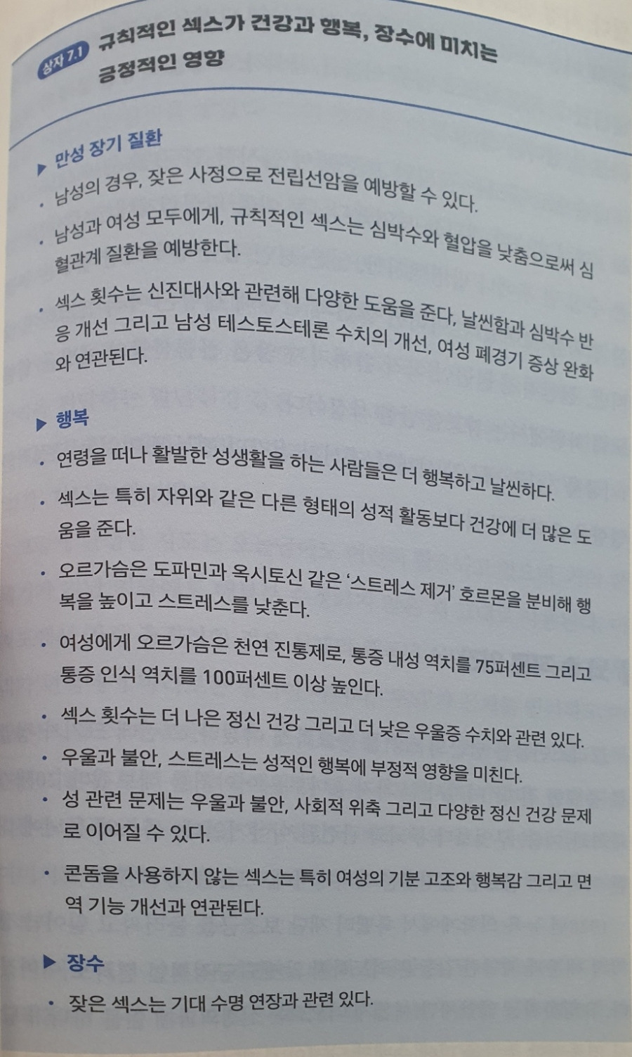 결국 성생활은 저번 챕터에서 다루었던 우리 몸속의 호르몬의 변화를 통해 우울과 불안감을 감소시키는데 좋은 행위입니다.