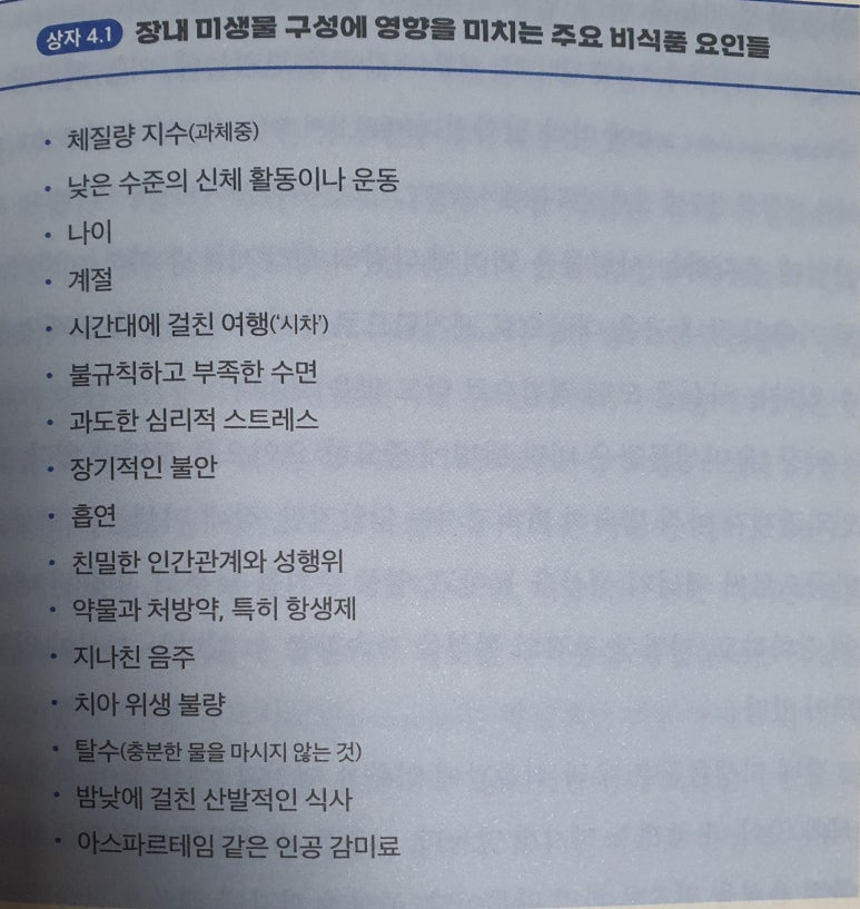 장 건강에 영향을 끼치는 것을 살펴보면 결국 건강한 사람들이 하지 않는 요소와 일맥상통합니다.