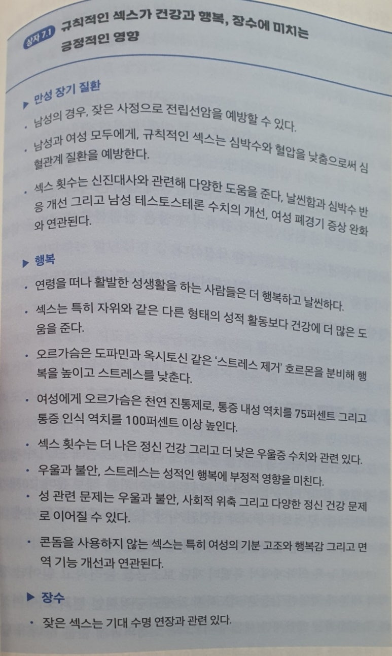 지금 밝혀진 내용을 제외하고도 성생활이 가지는 이점에 대해서는 아직 밝혀지진 않은 것이 많다는 게 대다수의 의견입니다.