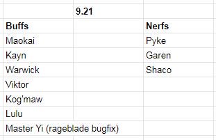 안녕하세요 토킹맨입니다. 9.21 밸런스 패치 예정된 챔피언 목록들이 나왔는데요.
