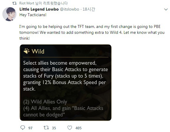 야생시너지가 또 변화한다는 내용입니다. PBE 서버부터 적용될 예정이며