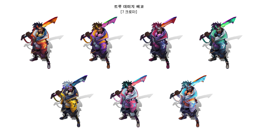 멤버는 아칼리,야스오,에코,세나,키아나이고 키아나를 제외한 챔피언들은 크로마가 있으며